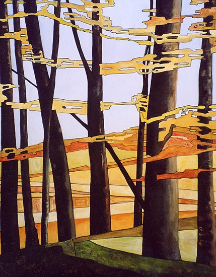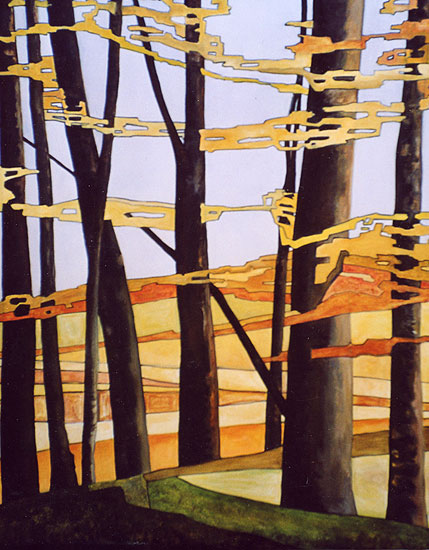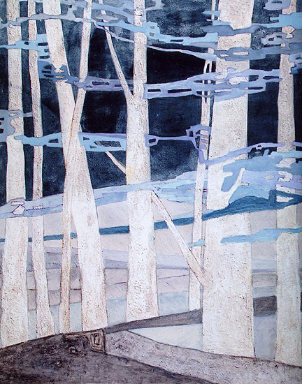Forêt en celée bleue Huile sur toile 106x127 |