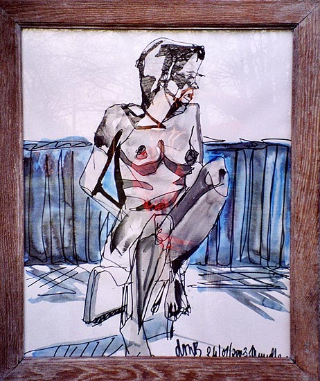 Nu au fond bleu Cadre gris, collage 52 x 37 |