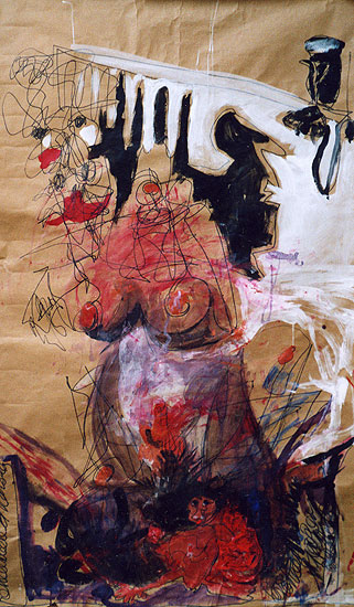 Nu déformé Acrylique sur kraft 140 x 100 |
